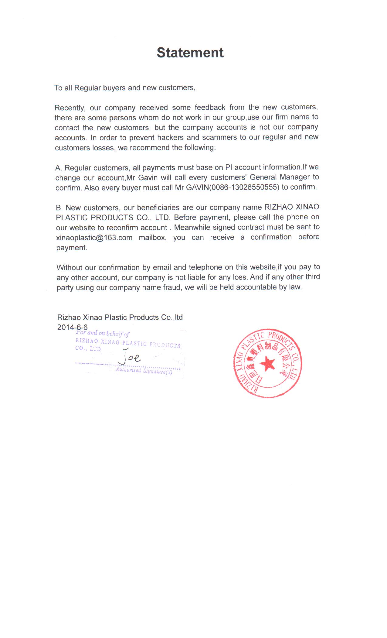 RIZHAO XINAO PLASTIC PRODUCTS CO.,LTD